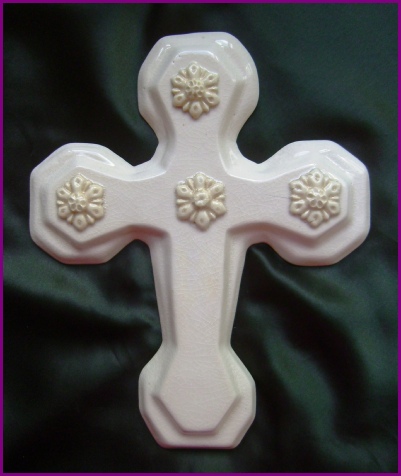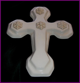 handmade glazed ceramic wall cross (broad - ivory crackle)